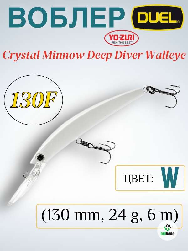 Воблер Duel/Yo-Zuri Crystal Minnow Deep Diver Walleye 130F (130 mm,24 g, 6m) W