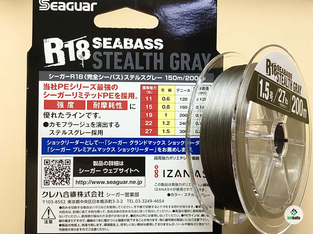 SEAGUAR SEABASS R18 STEALTH GRAY PE X8 200m - #1.5 (27lb/12,4kg)