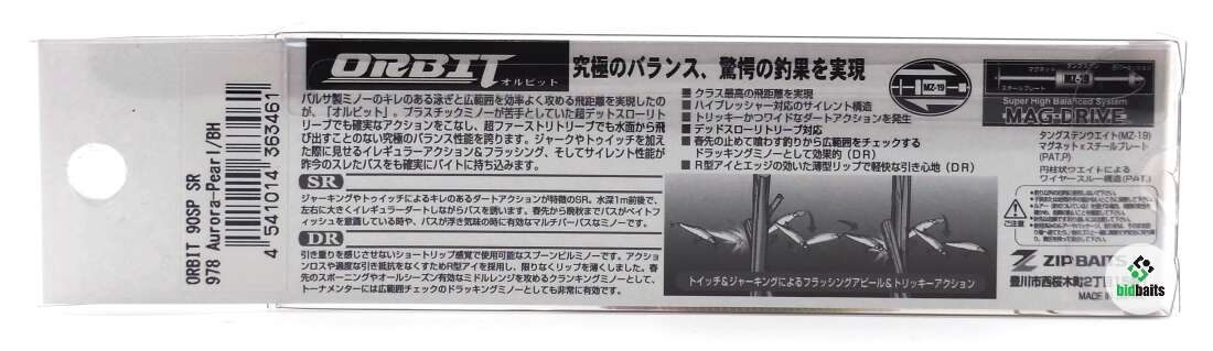 Воблер ZipBaits Orbit 90SP-SR (90мм, 10,2г) цвет 978 Aurora-Pearl / BH