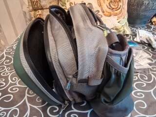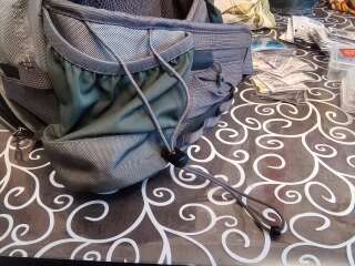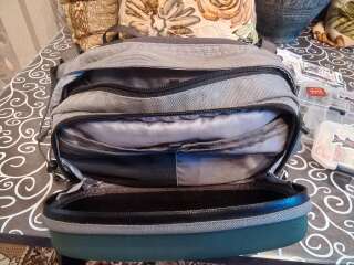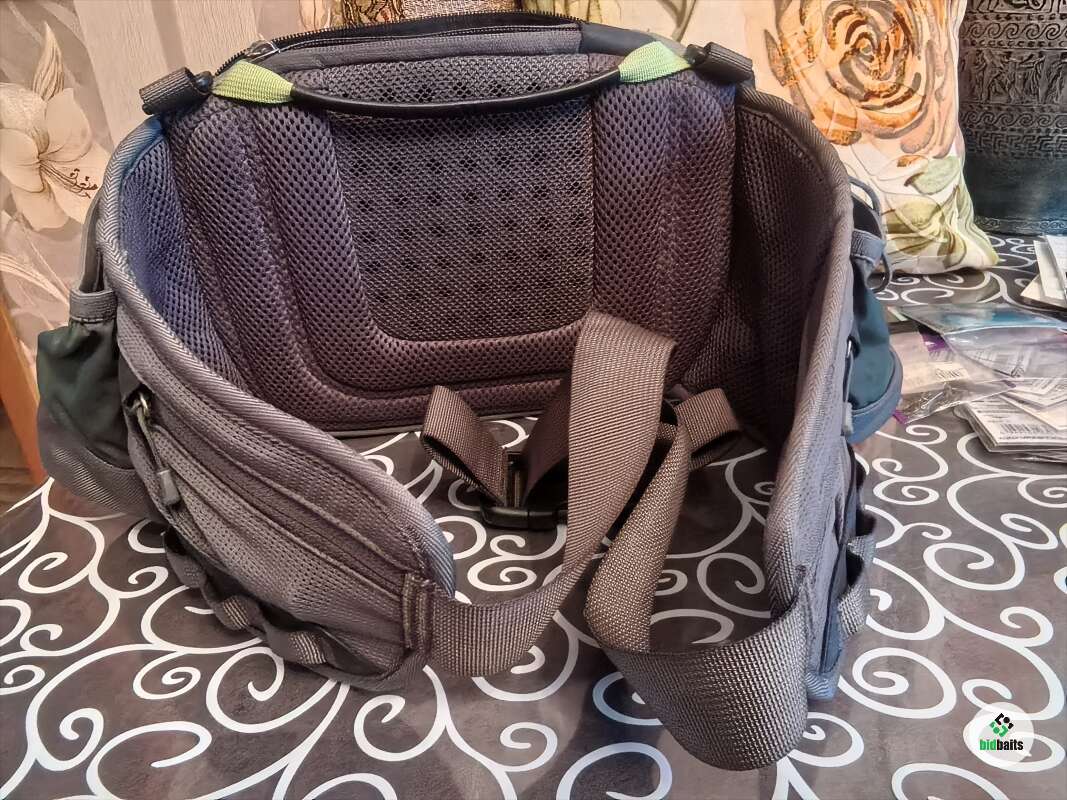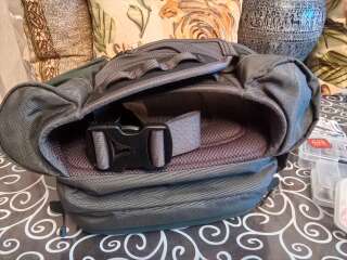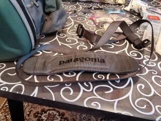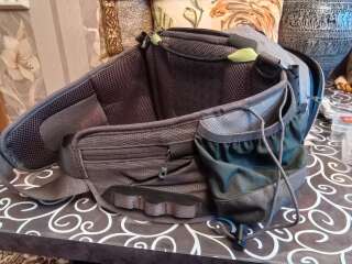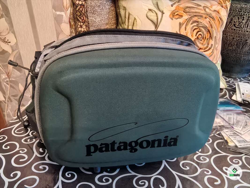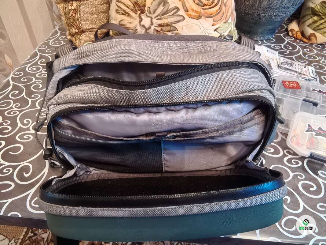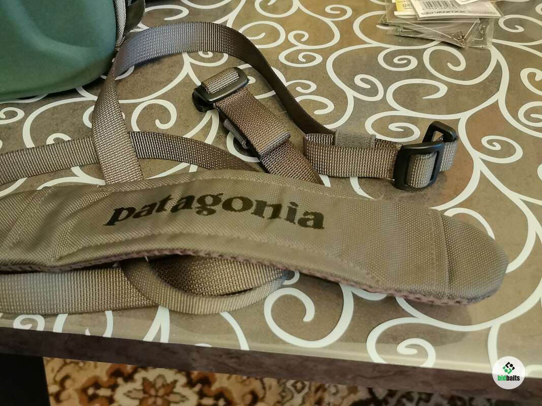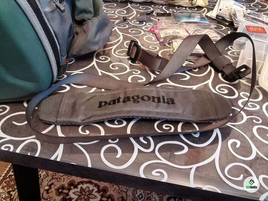 Сумка поясная с ремнём на шею Patagonia. За много лет на воде была пару раз. В основном лежала дома для хранения снастей. Из минусов: резинки для крепления бутылок рассохлись от времени и на держателе ножниц отслоилась кожа немного. В остальном всё отлично, много карманов передний отсек с герметичной молнией