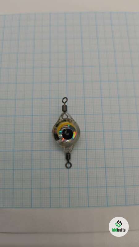 С другой стороны снасти имитация рыбьего глаза, с переливающейся радужной оболочкой глаза. Все это залито прозрачным, качественным, гладким пластиком.