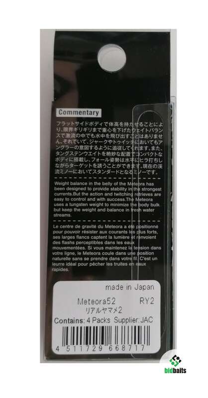Япония. Воблер JACKSON METEORA 52мм, 5гр, тонущий (применен вольфрам)
