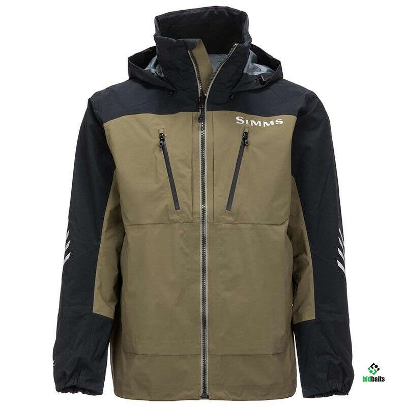 Simms ProDry Jacket – рыболовная куртка из прочной 3-слойной мембранной ткани, которая не позволит вам намокнуть даже во время шторма. Капюшон имеет 3-точечную регулировку и способен удерживаться даже при движениях на больших скоростях. Центральная молния водонепроницаема, как и нагрудные карманы на молнии. По бокам есть регулируемые карманы для рук с молнией, а также карман внутри куртки. У подола предусмотрено d-образное кольцо.