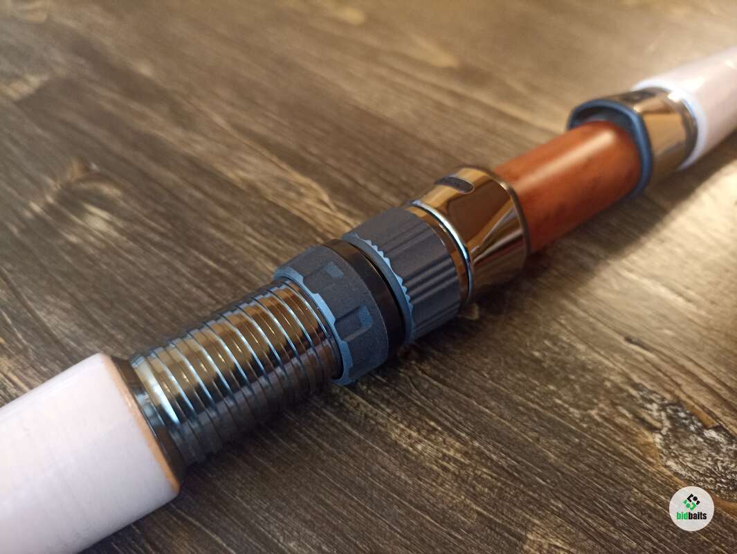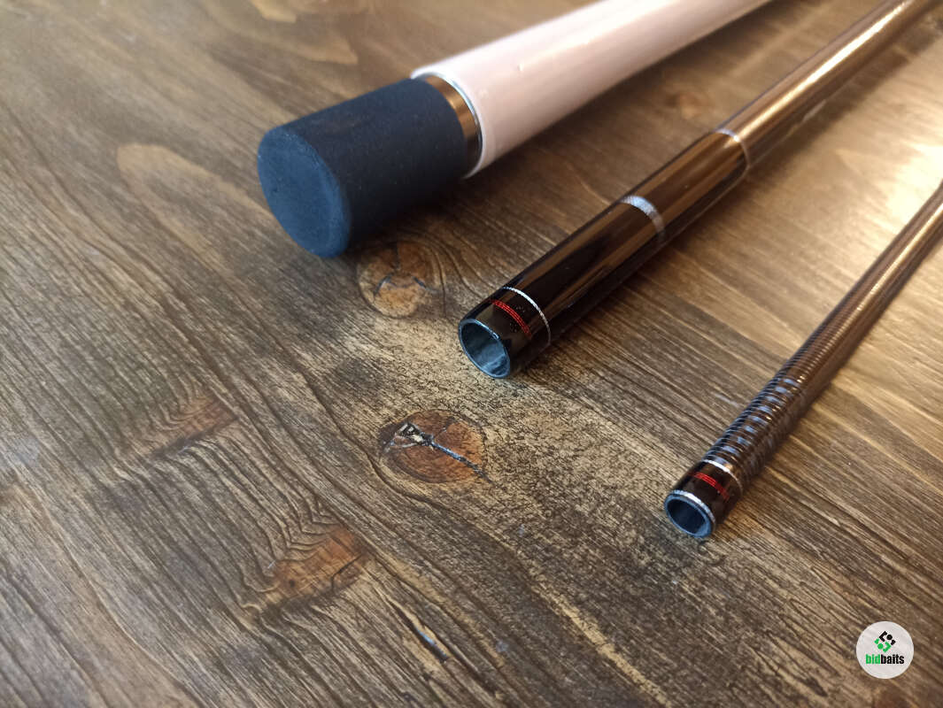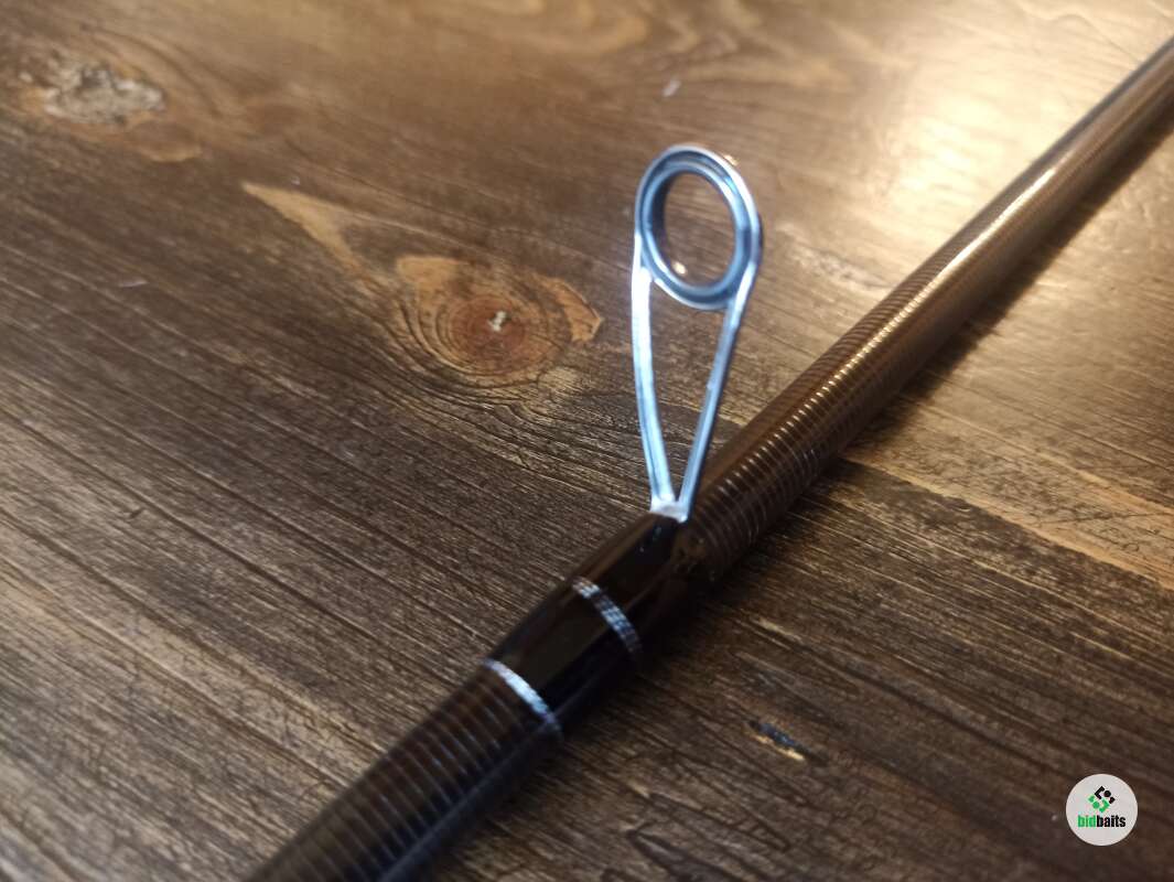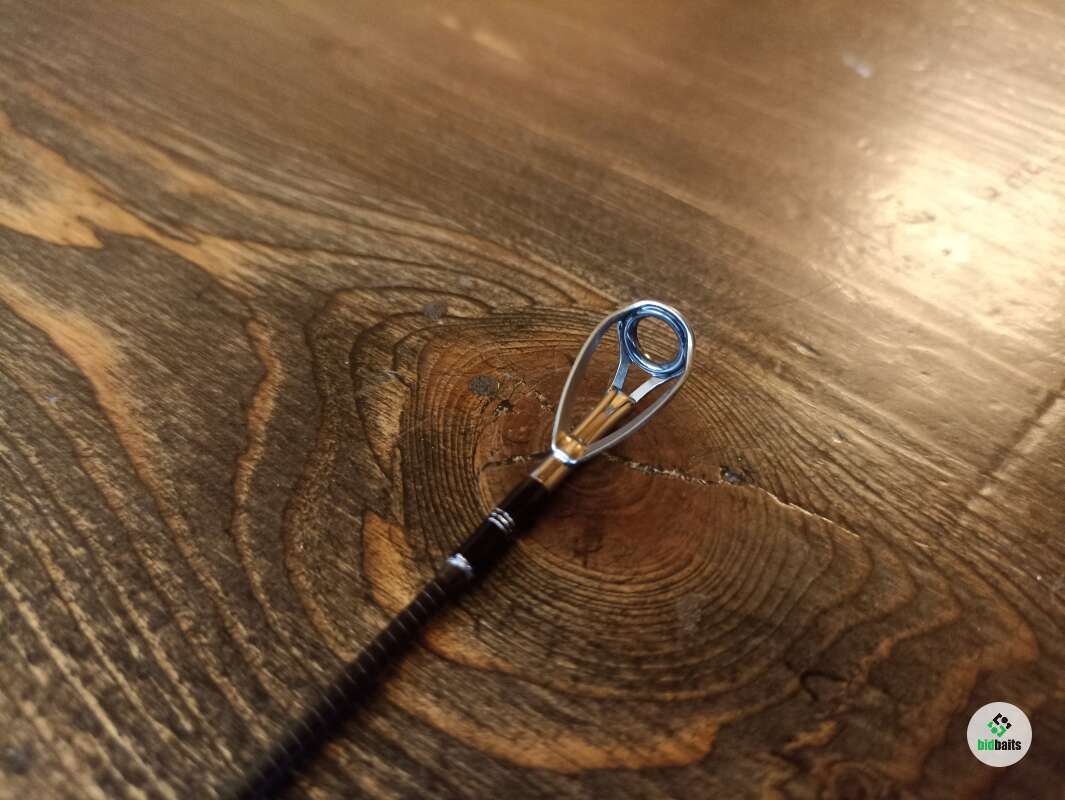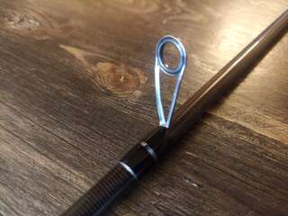 Бланк выполнен из сочетания карбона различной плотности, 24t + 30t + 40t. Вершинка и вторая секция оснащены кольцами Fuji SiC в титановых рамках, комлевая сеция кольцами SiC в рамках из нержавейки. Большие пропускные кольца позволяют работать спиннингом даже в условиях поздней осени, при обледенении лески или шнура. Строй спиннинга облегчает подачу в условиях встречного или бокового ветра. Вставка катушкодержателя из натурального стабилизированного дерева. Нижнее расположение гайки катушкодержателя (гайка + контргайка).