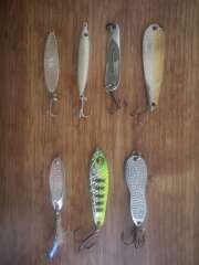 Рабочий набор на жереха 7-15 гр. (7 шт.). 1. RB Flamingo 10 g # AG /G. 2. RB Delphy 10 g #103. 3. RB Salvador 11 g #01 Glow. 4. Cargo Classic Heavy 15 g # Gold. 5. Nories Metal Wasaby Hammered 14g (реплика). 6. IR Paco 14 g (реплика). 7. Kosadaka Castmaster 7 g. Всё в отличном состоянии, некоторые воды не видели.