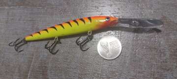 Состояние на фото - в этом случае затрудняюсь дать объективную оценку воблеру, как правило следы использования ярко выражены, может быть не всё хорошо с лкп,но видимых дефектов по функционалу не обнаружено