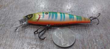Состояние на фото - в этом случае затрудняюсь дать объективную оценку воблеру, как правило следы использования ярко выражены, может быть не всё хорошо с лкп,но видимых дефектов по функционалу не обнаружено