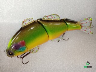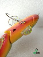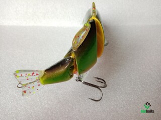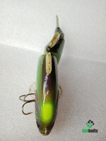 Свимбэйт из дерева,плавающий,с активной игрой.Вес 120гр,длина 180мм.Трёх-составной.