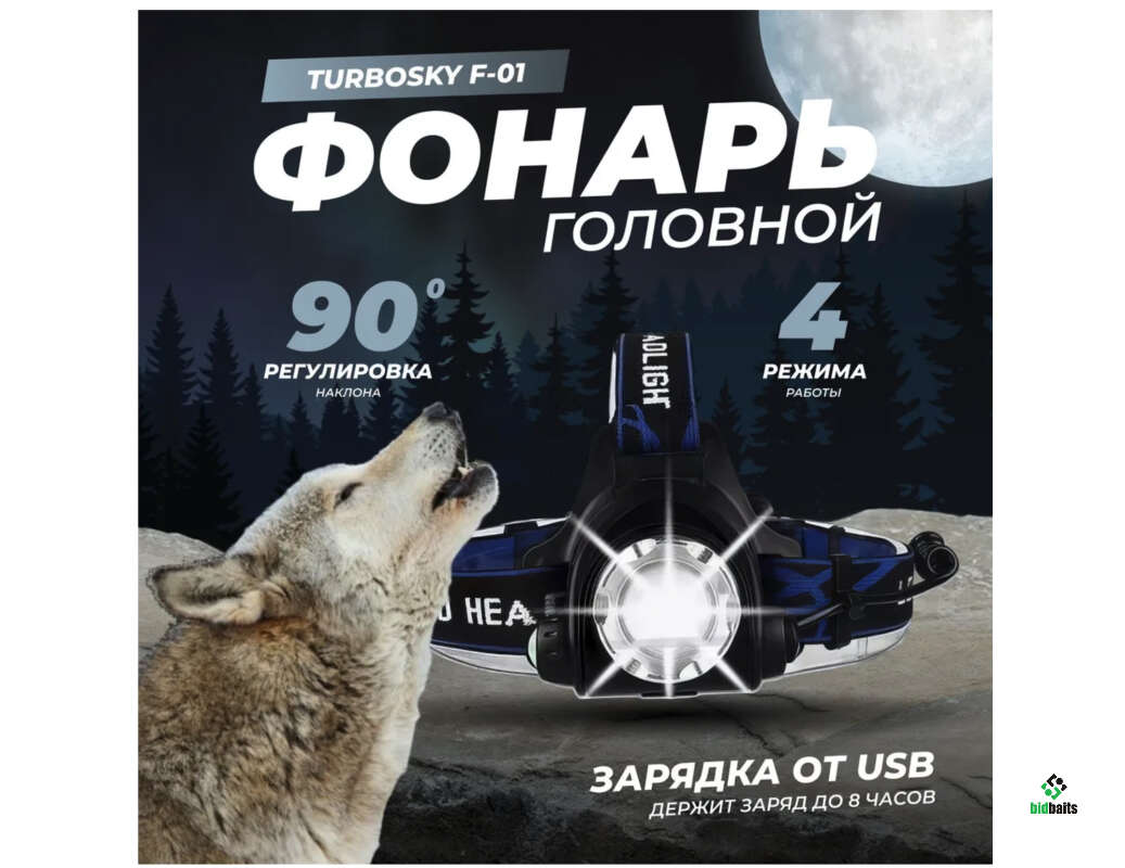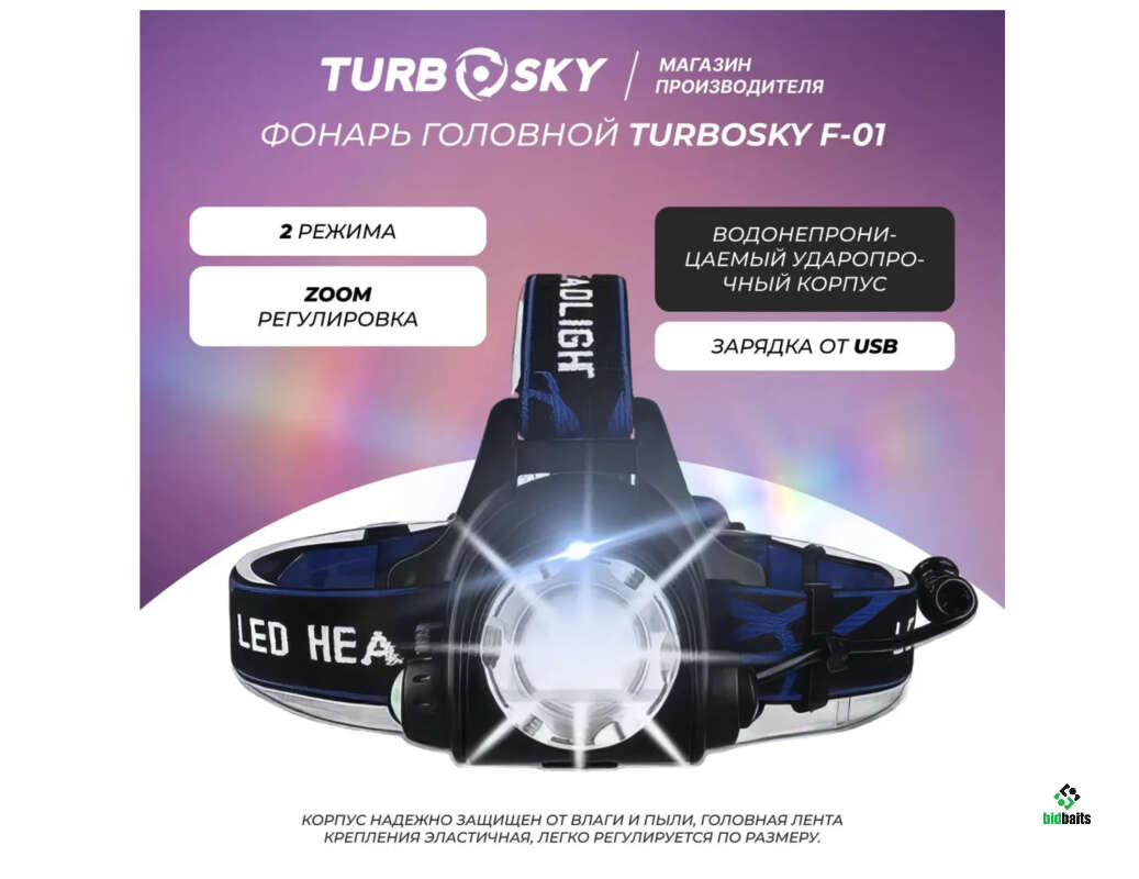 Фонарь светодиодный головной Turbosky F-01 + АКБ