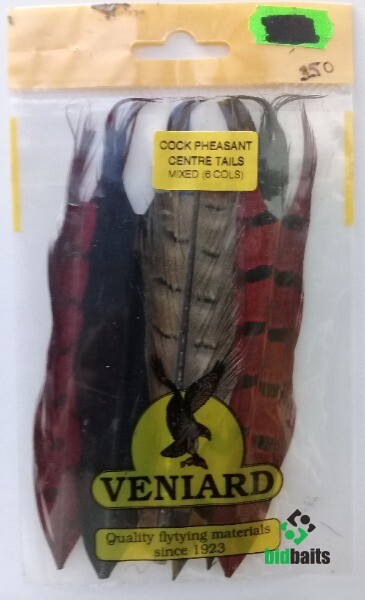 Микс 6 штук из частей цветных, центральных перьев охотничьего фазана фипмы VENIARD, Англия, для вязания нахлыстовых мушек.