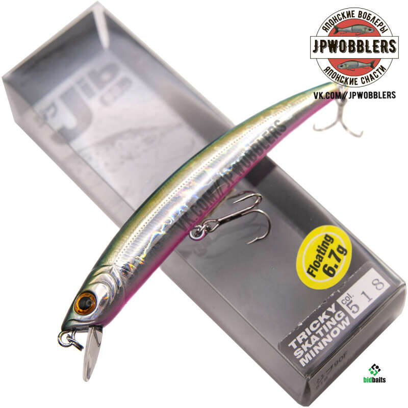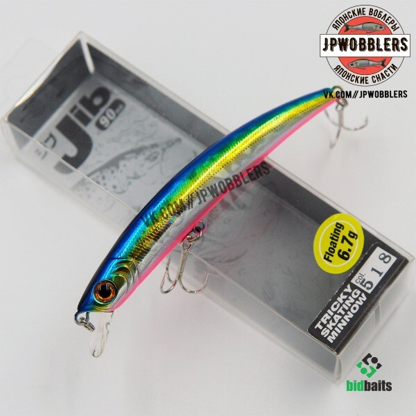 Воблеры серии Jib от торговой марки Smith выпускаются в нескольких модификациях, которые отличаются заглублением и степенью плавучести. Модель F обладает положительной степенью плавучести. Для Jib F подойдет как равномерная или рывковая проводка, так и Stop&Go. Оснащается данный воблер минноу системой балансировки, которая не только улучшает его полетные качества, но и стабилизирует игру приманки при проводке. Продуманная форма тела заставляет воблер переваливаться с боку на бок, совершая размашистые движения. Длина модификации 90 F составляет 9 см., а вес – 6,7 гр. Кроме своего внешнего вида и игры воблер манит голодных хищников еще и шумовыми эффектами.