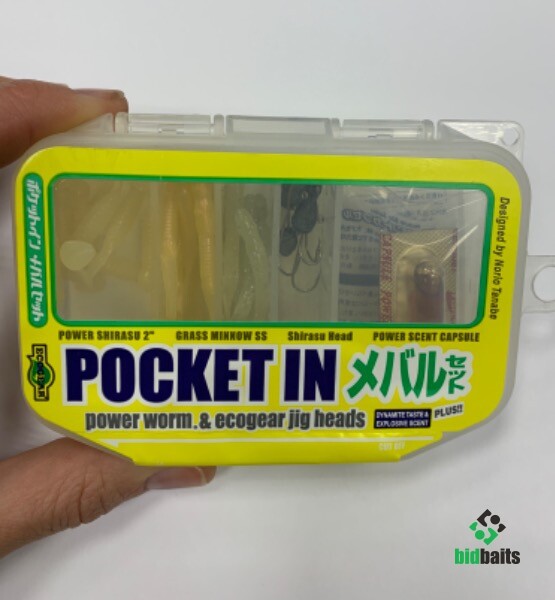 Ecogear POCKET IN - готовые наборы для начинающих или желающих попробовать новый для себя вид ловли. Наборы состоят из специально подобранных съедобных силиконовых приманок и джиг-головок для них в удобной небольшой коробке.