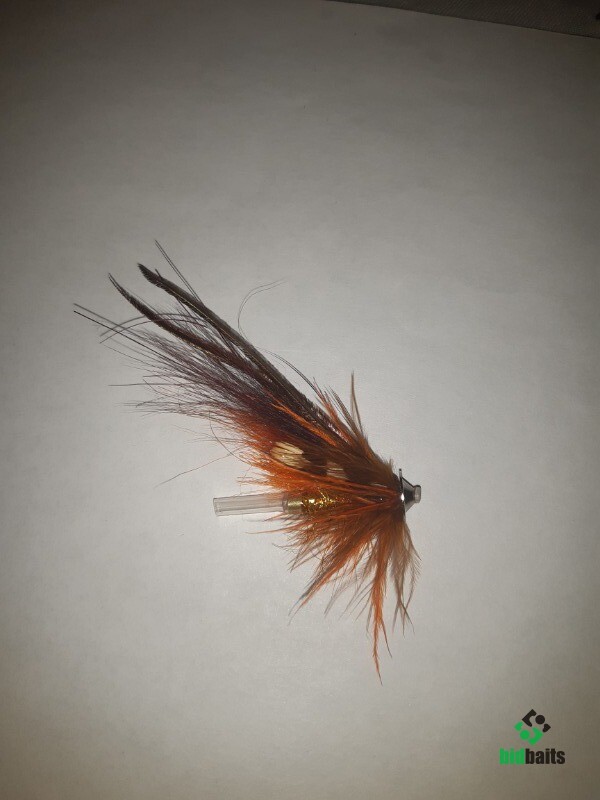 Лососевая мушка на латунной трубке с турбо-конусом. По желанию могу оснастить подходящим нахлыстовым двойником или тройником от 80руб (камасан, партридж и т.п.). При необходимоти свяжу практически любую лососевую мушку, можно по вашему прототипу.