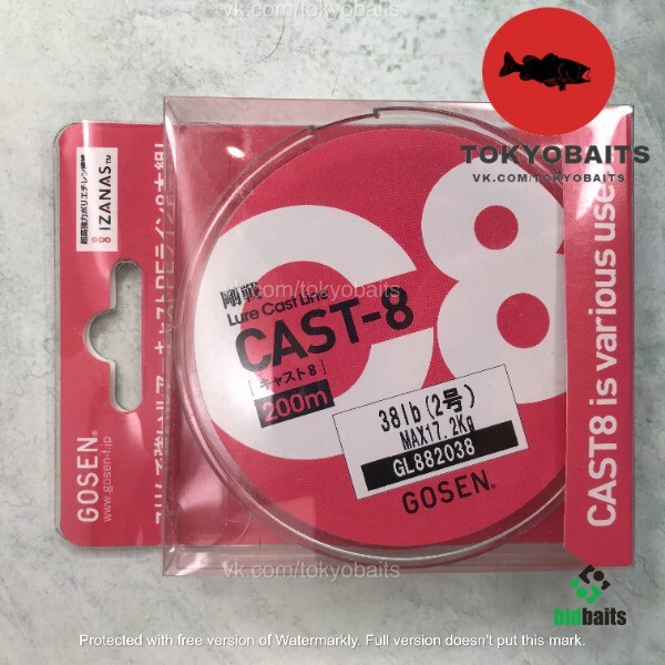 Шнур плетеный GOSEN CAST-8 200M/2.0PE/38LB/8 жильный