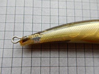 Бальсовые воблеры однозначно ловят лучше чем их пустотелые собратья. Привезен из Японии. Тонущий. Отличный воблер, качество на высоком уровне. Цвет как у малька, отливает перламутром. Воблер подписан. Точное наименование производителя не подскажу. Имеется дефект в хвостовой части.