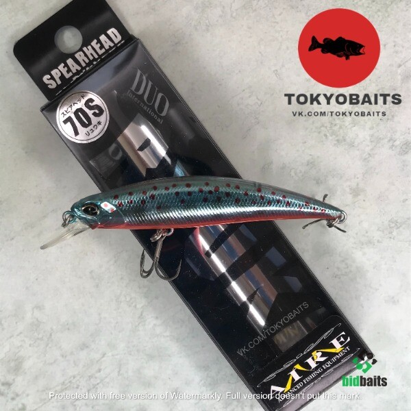 Воблер DUO Ryuki S – тонущая версия форелевой серии приманок DUO Spearhead. В основном предназначен для ловли на сильном течении, поэтому японские разработчики сделали его тело максимально обтекаемым, а центр тяжести сместили в брюшную часть. За счёт этого значительно возросла устойчивость воблера даже на скоростных проводках. Ryuki S имеет выраженную собственную игру и очень отзывчив на рывковую проводку, рыская по сторонам при каждой потяжке удилищем. На паузе начинает довольно активно погружаться, тем самым имитируя обессиленную рыбку.