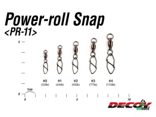 Decoy рекомендуют данный элемент оснастки для вертушек и других видов приманок, которые могут перекручивать, путать леску. Пригодится такая серия и при ловле на течении. "Изюминка" модификации Power Roll Snap с индексом PR-11 - это шариковый подшипник, предусмотренный конструкцией вертлюжка для более легкого, ровного вращения. Для большей надежности застежка выполнена из цельного отрезка проволоки, в которой сочетаются прочность и упругость. Дополнительно эта деталь обработана антикоррозийным покрытием. Простой механизм дает возможность оперативно менять приманки при необходимости.