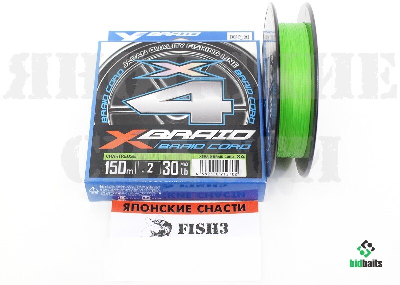 X-Braid Braid Cord X4 - линейка четырехжильных плетеных шнуров от известного рыболовного бренда YGK, название которого после ребрендинга сейчас значится, как X-braid.