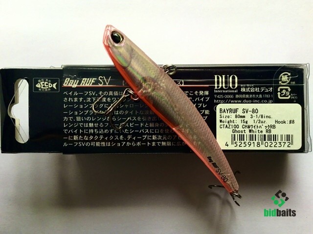 Bay Ruf SV80 – это воблер семейства VIB (vibrations) прогонистой формы с большим удельным весом используются как правило, при ловле взаброс на глубоких местах как с берега, так и с лодки, как в стоячей воде, так и на течении, и даже сильном. В таких условиях данный тип приманок действительно очень эффективен и уловист.DUO Bay Ruf SV 80 отлично зарекомендовал себя для ловли в отвес из подо льда . За счёт своей игры и движения по спирали она облавливает достаточно большое пространство, а её уловистость превосходит многие именитые балансиры. Вряд ли Масахиро Адачи думал про балансиры, создавая свой Bay Ruf SV. Он всё-таки стремился создать нестандартный VIB. Но получилась приманка, которая демонстрирует игру лучших балансиров, сконструированных специально для зимней рыбалки. А уловистость… с высокой долей уверенности можно предположить, что вам будет сложно найти аналог, который сможет обойти DUO Bay Ruf SV 80 по этому показателю. .Проводка зимой - рывковая с большими паузами, летом - джиговая.