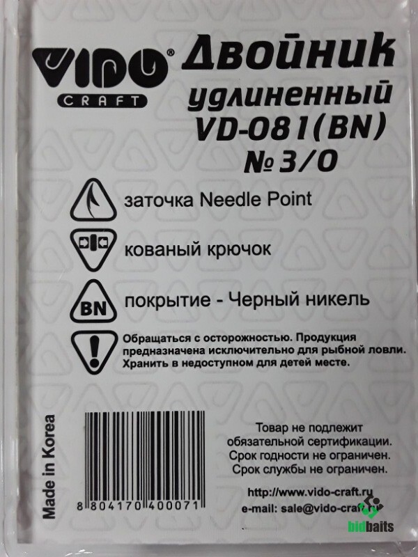 КРЮЧКИ ДВОЙНИК VD-081(BN) DOUBLE LONG УДЛИНЁННЫЙ №3/0 25шт