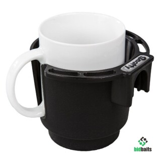 Подстаканник для бутылки, чашки или кофейной кружки с крепежным комплектом для установки на ровную вертикальную или горизонтальную поверхность. Модель совместима с креплениями фирмы Scotty.