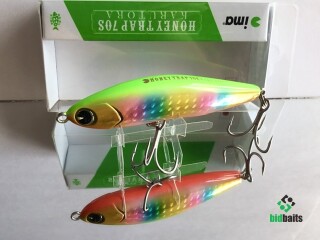 Ima Honey Trap Karutora 70S относится к классу приманок стикбейт – это безлопастный воблер тонущего формата, предназначенный для ловли на минимальных глубинах. Изначально он создавался для рыбалки на форель и сибаса, в наших условиях используют его для охоты на жереха. Сверхдальнобойная приповерхностная приманка как нельзя лучше вписывается в жереховую рыбалку, поскольку этот хищник чаще всего охотится на мелководье, например, перекатах и песчаных прогонах между ямами. Полностью обтекаемый корпус наделяет «стик» незаурядными аэродинамическими свойствами, к которым добавляется центр тяжести, смещенный в хвостовую часть. Все это позволяет забрасывать top water на рекордное расстояние. Собственной игры у Honey Trap Karutora нет, что делает его схожим с твичинговыми минноу. Stickbait прост в освоении, так как сочетается с незаурядной рывковой проводкой. На паузе Honey Trap Karutora медленно сыпется поблескивая боками, показывая уникальный роллинг при падении.. Главный ключ к успеху – реалистичная игра стикбейта, способная соблазнить не только привередливого жереха, но и любого другого хищника.