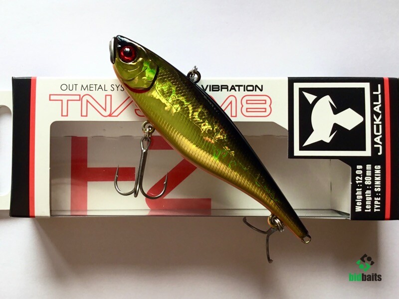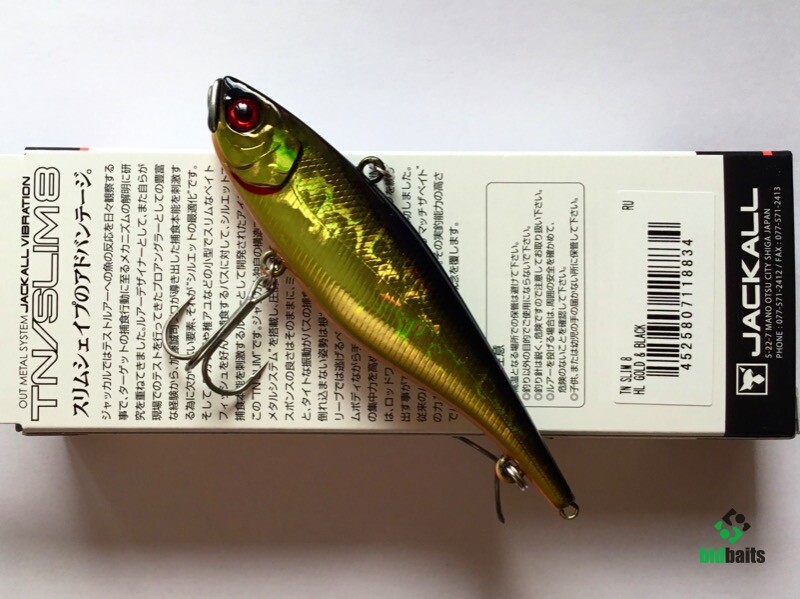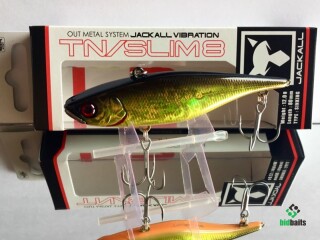 Jackall TN Slim 8 имея удлиненное, прогонистое , уплощенное с боков тело обладает хорошими полетными характеристиками. Металлический нос приманки защищает её от ударов о подводные препятствия и также стабилизирует работу воблера на медленных скоростях проводки. При прохождении препятствия воблер просто переваливается через них. Свинцовый груз цилиндрической формы в теле приманки издает низкочастотный звук, слышимый рыбой с больших расстояний.Характерная особенность TN SLIM 8 – дополнительная петелька на хвосте приманки. Рыболов может подвесить еще один крючок с опушкой, либо стример, или маленький твистер, разнообразив тем самым игру и привлекательность приманки. Кроме равномерной проводки на разных скоростях эта приманка позволяет осуществлять и рывковую, джерковую проводку. Воблер отлично ловит всех наших пресноводных хищников. При ловле в верхних слоях воды на высоких скоростях подмотки выступает одной из самых интересных приманок при ловле жереха.