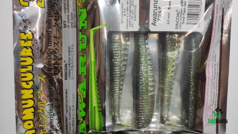 Виброхвосты Awaruna изготовлены из мягкого износоустойчивого пластика Gumexim с добавлением фирменного аттрактанта Homunculures-SFT. Приманка имеет очень интересную конструктивную особенность: в теле приманки, строго по центру, расположено отверстие, позволяющее идеально ровно насаживать ее на джиг-головку или двойник. Небольшой паз на спине позволяет прятать в него жало офсетного крючка, тем самым превращая приманку практически в "незацепляйку".
