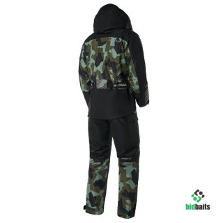 Универсальный костюм из мембранной ткани «HARD-TEX». Куртка имеет отстёгивающийся капюшон, регулируемый по объёму в двух плоскостях, два внутренних кармана с влагозащитными молниями и два внешних нагрудных кармана с влагозащитной тракторной молнией, устойчивой к попаданию грязи. Центральная двухзамковая влагозащитная тракторная молния, устойчива к грязи и защищена клапаном с магнитной системой застежки. Куртка имеет комфортный флисовый ворот. Рукава снабжены плотно прилегающими манжетами из прорезиненного материала, препятствующими затеканию воды в рукава. Куртка оснащена кулисой внизу для подгонки по фигуре, страховочными кольцами для крепления чеки, светоотражающими элементами для обеспечения безопасности в темное время суток. Брюки имеют два больших накладных набедренных кармана, регулировку объёма по низу брюк. Колени имеют 3D форму и не ограничивают в подвижности. Брюки оснащены высокой тёплой спинкой с подтяжками, регулируемыми по длине. Все швы и молнии костюма проклеены.