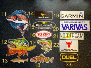 Наклейки популярных рыболовных брендов для украшения рыболовной атрибутики и не только .