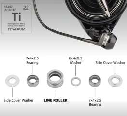 Титановый ролик под два подшипника с комплектом установки Shimano (Sahara,Sedona,Nasci,Miravel,Aero)