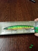 Оригинальный Воблер Sprut Haku 3D 130F (Floating/130mm/14,5g/0,5-1m/. Color LGRT (LEMON GREEN TIGER.