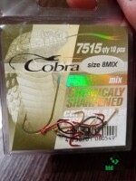 Оригинальные одинарные Крючки Cobra Mix 7515. Size 8.(10шт. Уп.). Made in Korea.