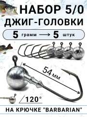 Джиг-головка на крючке BARBARIAN №5/0, 5 гр (5шт)