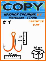 Крючок тройной светящийся UV оранжевый #1 (10шт)