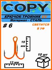 Крючок тройной светящийся UV оранжевый #6 (10шт)