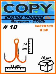 Крючок тройной светящийся UV оранжевый #10 (10шт)