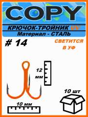 Крючок тройной светящийся UV оранжевый #14 (10шт)