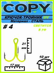 Крючок тройной светящийся UV шартрез #4 (10шт)