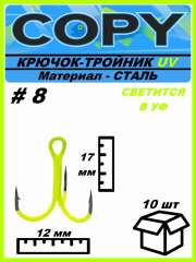 Крючок тройной светящийся UV шартрез #8 (10шт)