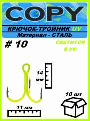 Крючок тройной светящийся UV шартрез #10 (10шт)