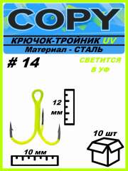 Крючок тройной светящийся UV шартрез #14 (10шт)