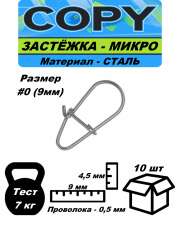 Застежка-карабин рыболовная Микро #0 - 9мм (10шт)