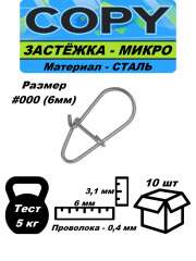 Застежка-карабин рыболовная Микро #000 - 6мм (10шт)